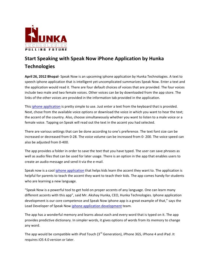 Start Speaking With Speak Now Iphone Application By Hunka Technologies