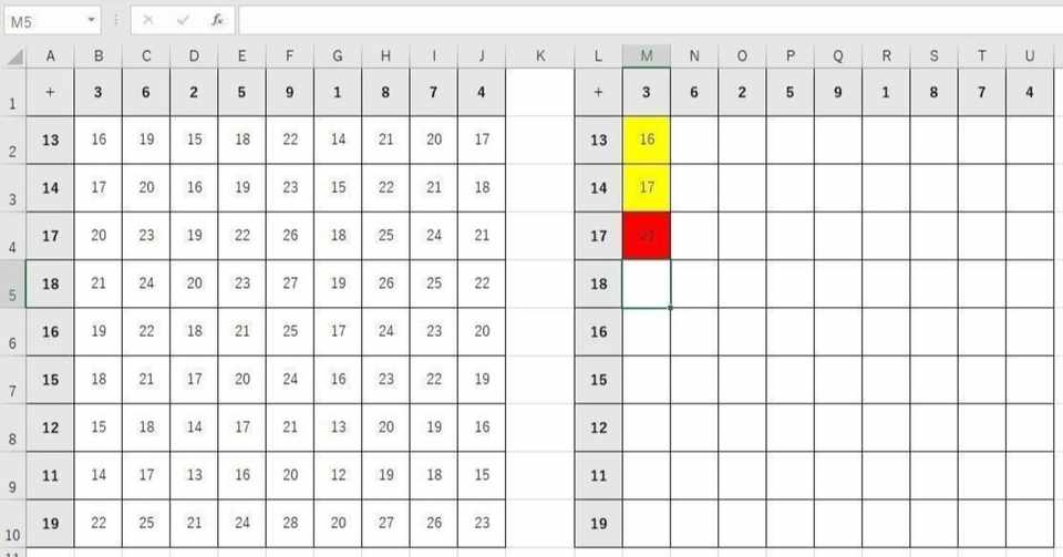 エクセルで100マス計算 マクロを利用せず掛け算 足し算 引き算 桁数も変更可能 正解不正解の色表示も 365 19 16 13 10 07対応 リーダーの独り言