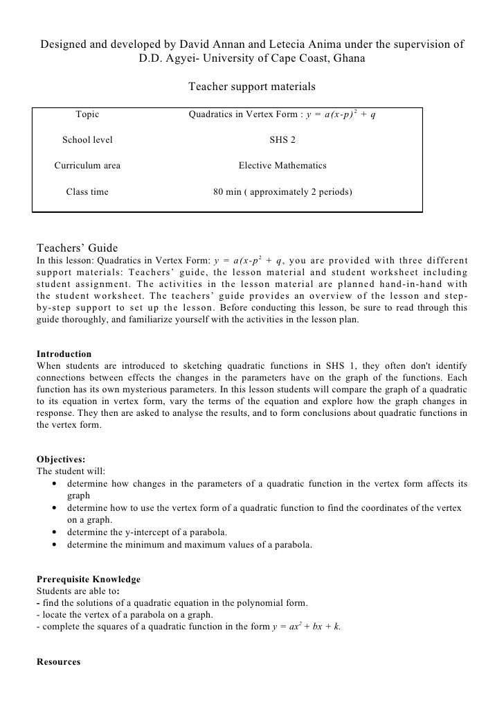Quadratic Standard And Vertex Form Lessons Tes Teach